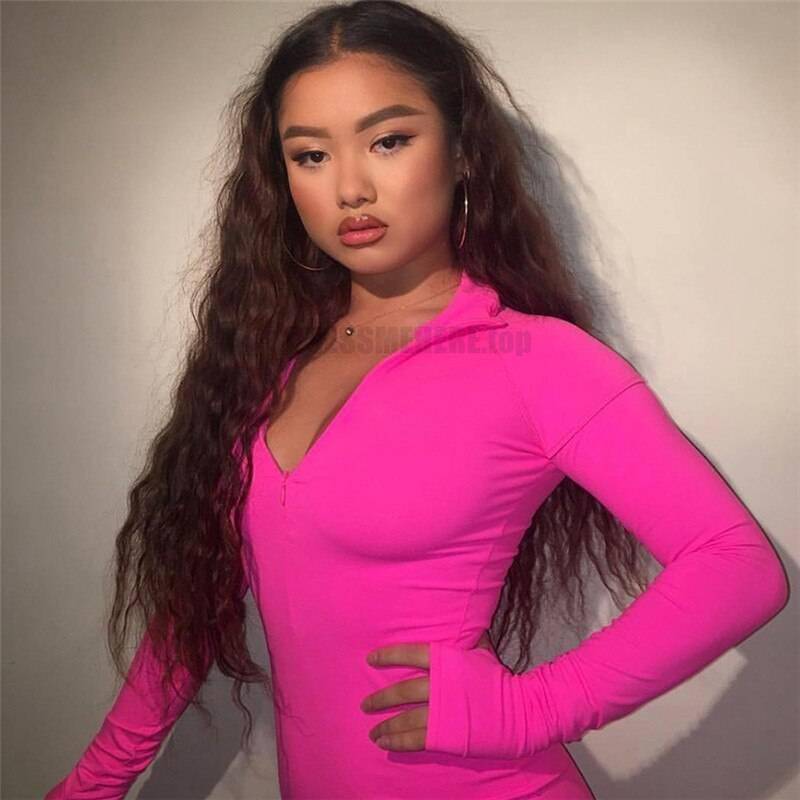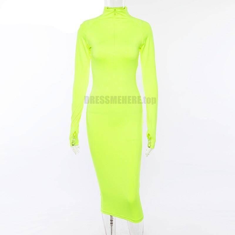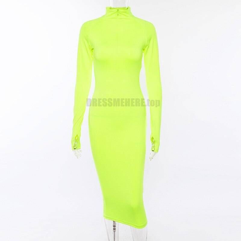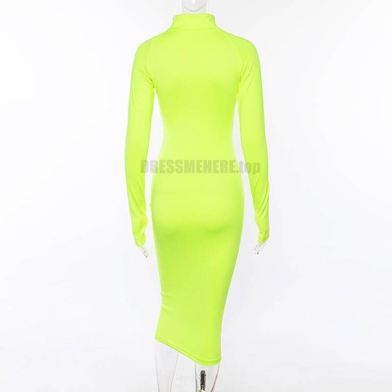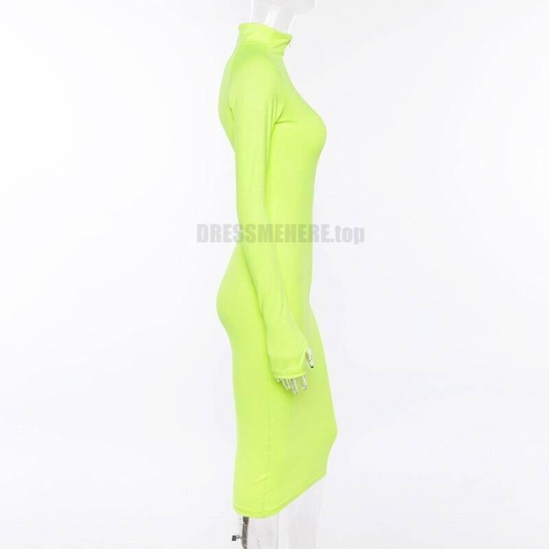 Feel stylish and sexy wearing this neon color dress this fall. Use this bright color zipper front dress as casual clothing, shaping your curves or a party dress matching with some fave accessories. Slip into long sleeve bodycon dress to feel different.