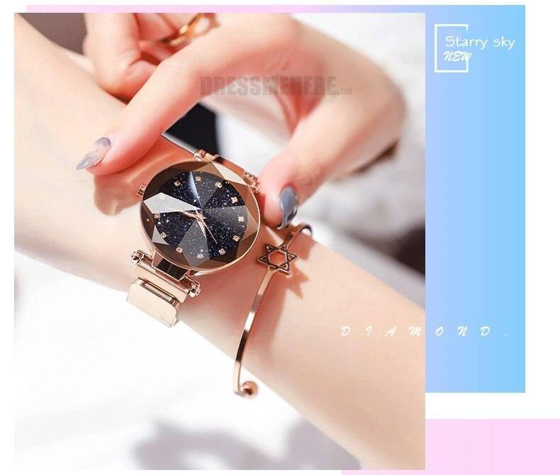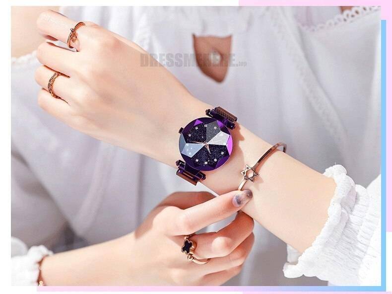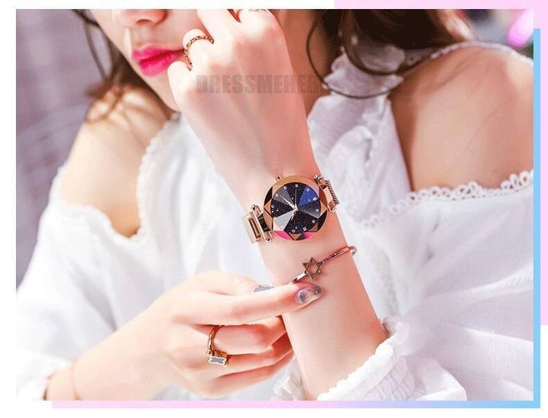 This watch is a precious gift for a woman who likes fancy bright accessories. Featuring the starry glass and solid stainless still strap this watch looks flashy and elegant.