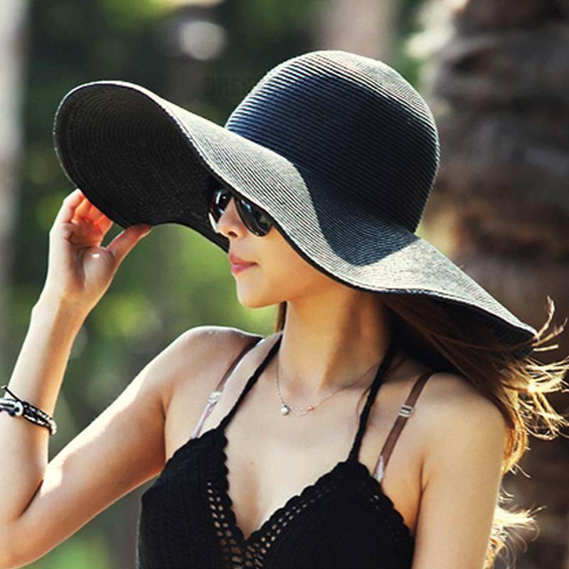 Women’s  hat summer black white oversized sunbonnet beach cap women’s strawhat sun hat